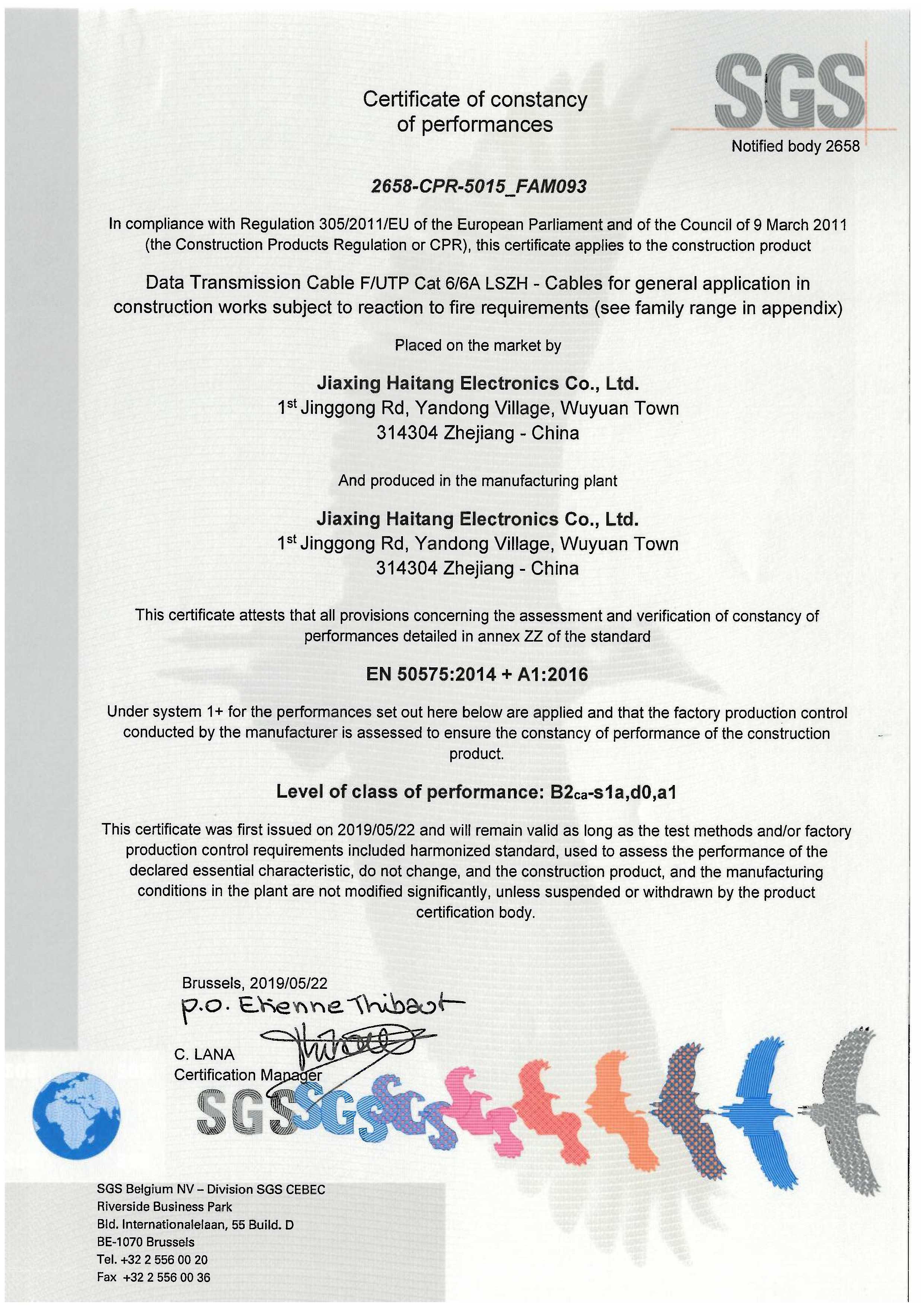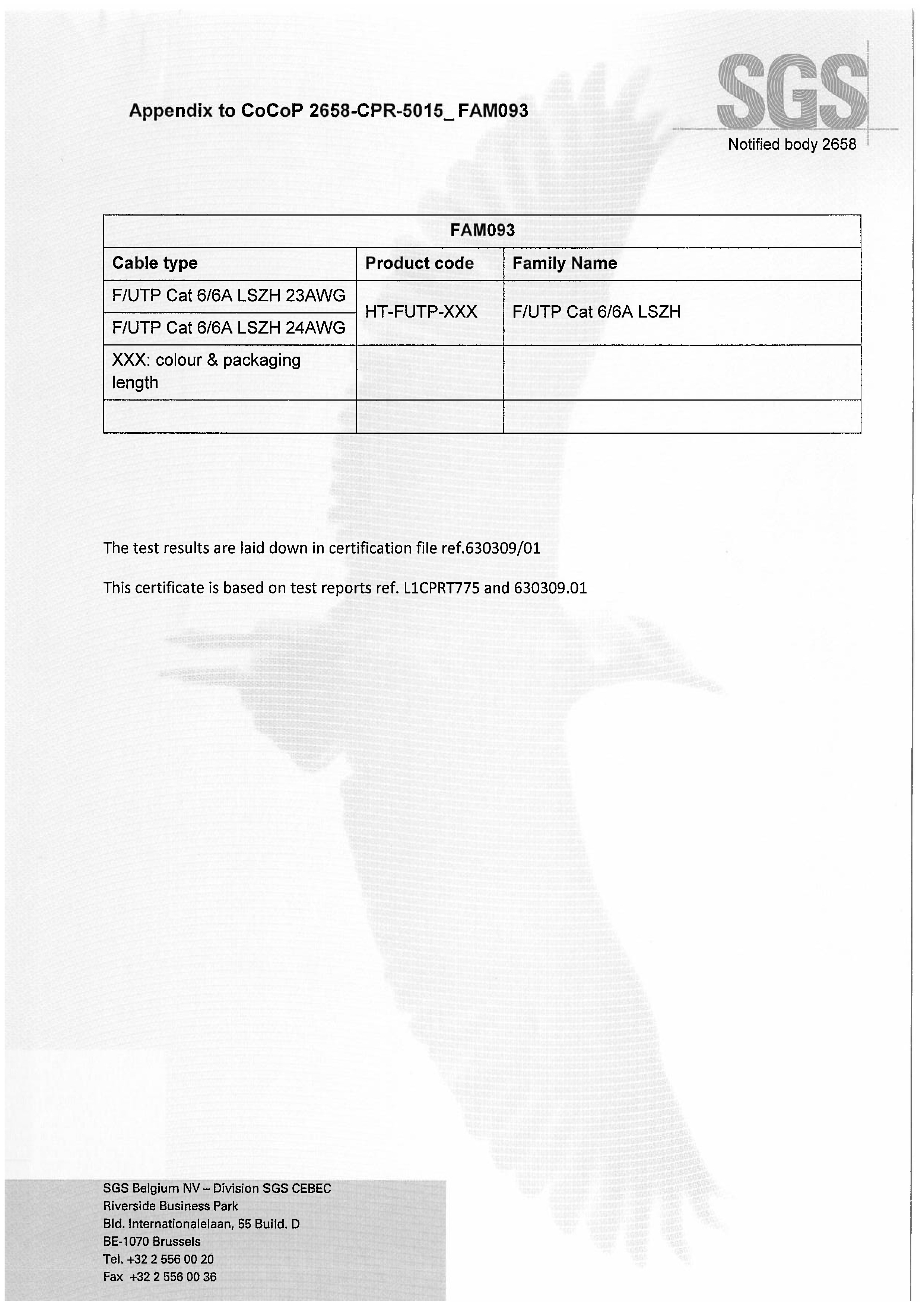 FUTP Cat6 6A LSZH SGS CPR B2級(jí)