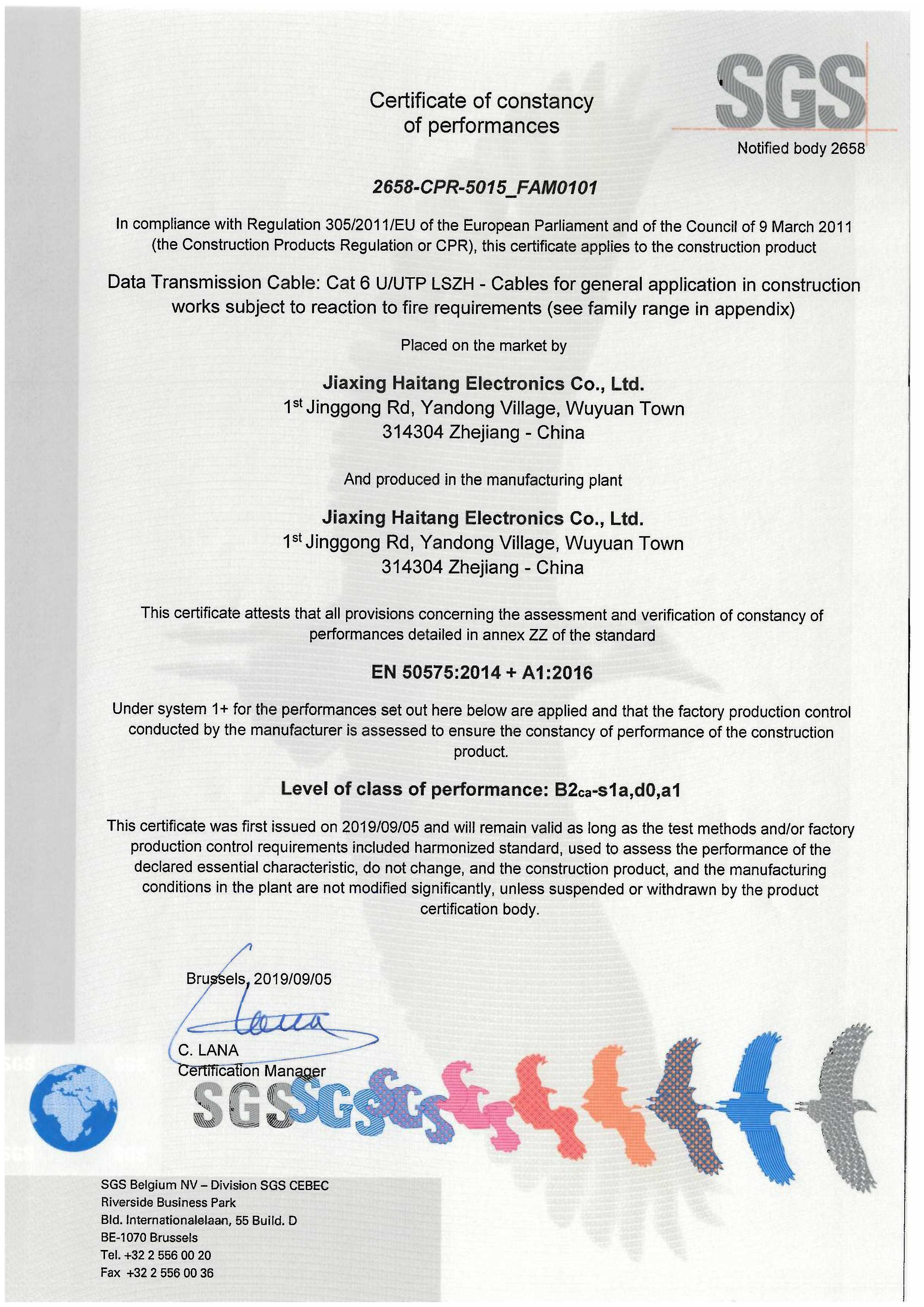 UUTP CAT6 LSZH SGS CPR B2級認(rèn)證